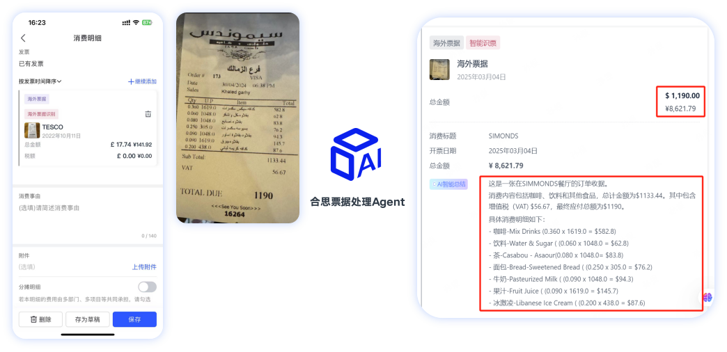 • 为出海企业提供全方位海外票据识别服务,确保企业海外票据影像存储,影像识别币种,日期,金额等信息,辅助报销审批