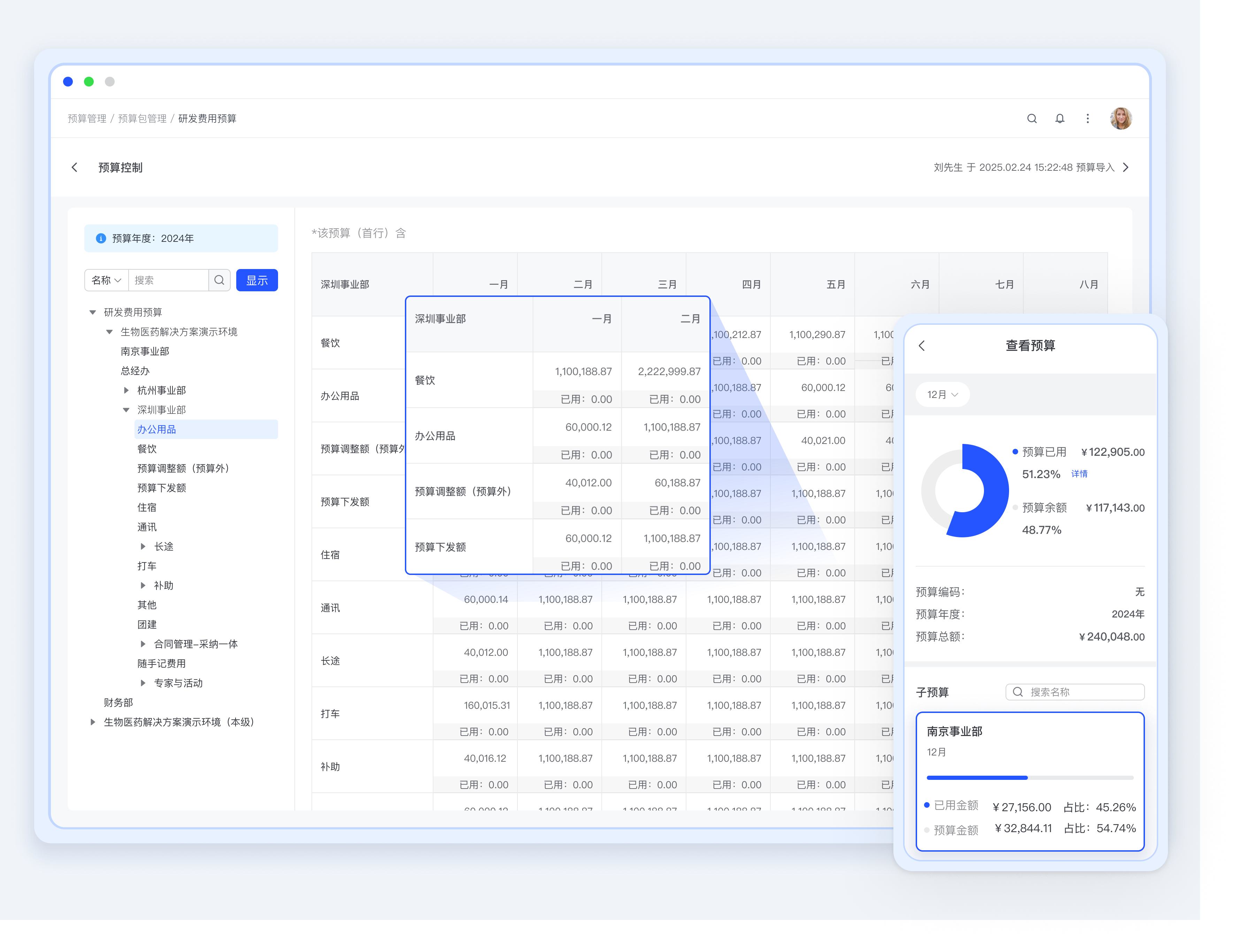 搭建多维度费控模型,预算执行进度实时跟踪。多维拆解,层层下发,精准管控,超标预警。